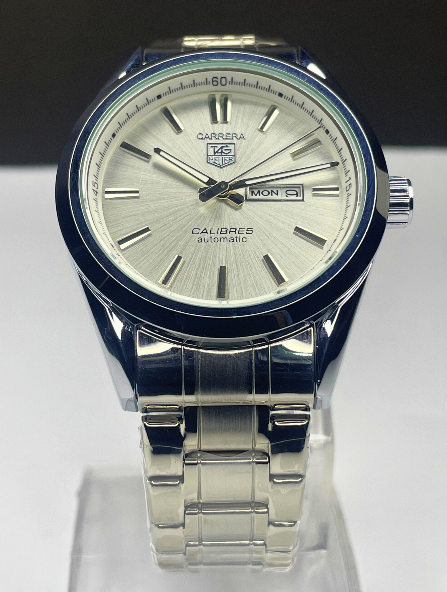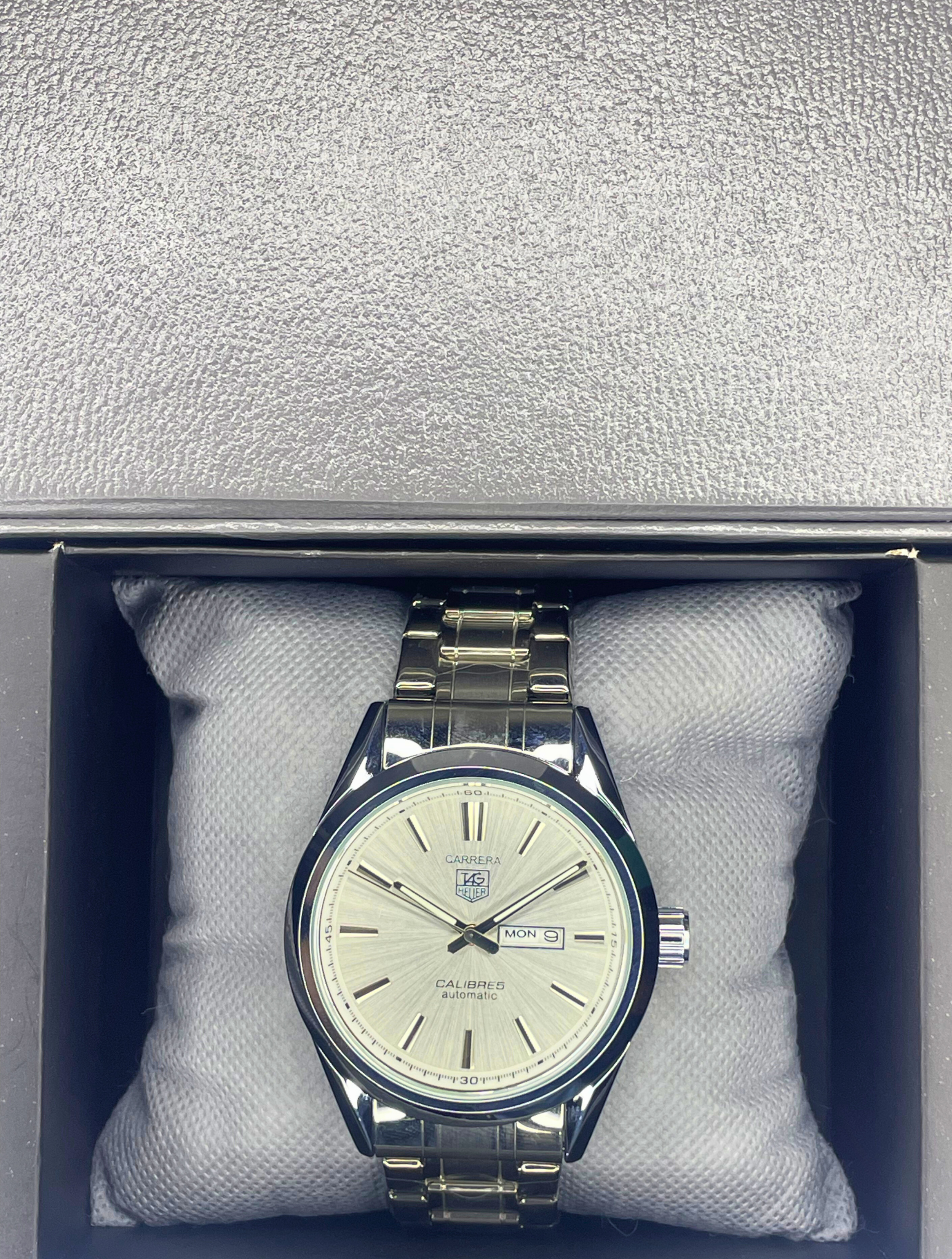 This Tag Heuer - Carrera Calibre 5 has a beautiful White dial with strong stainless steel build. It’s a stylish and reliable watch, perfect for adding a touch of luxury to everyday wear.
